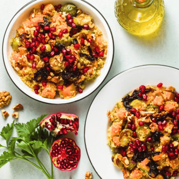 Servez dans des bols et garnissez de plus de noix et de grenades fraiches.