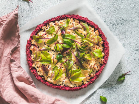 Recette de pizza de betterave, chèvre frais et jeunes pousses