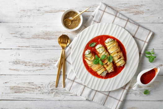 Cannelloni de courgettes à la ricotta, épinards et basilic